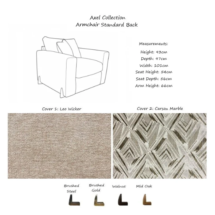 Axel Armchair & Love Chair Collection - Choice Of Pillow Or Standard Back, Fabrics & Feet