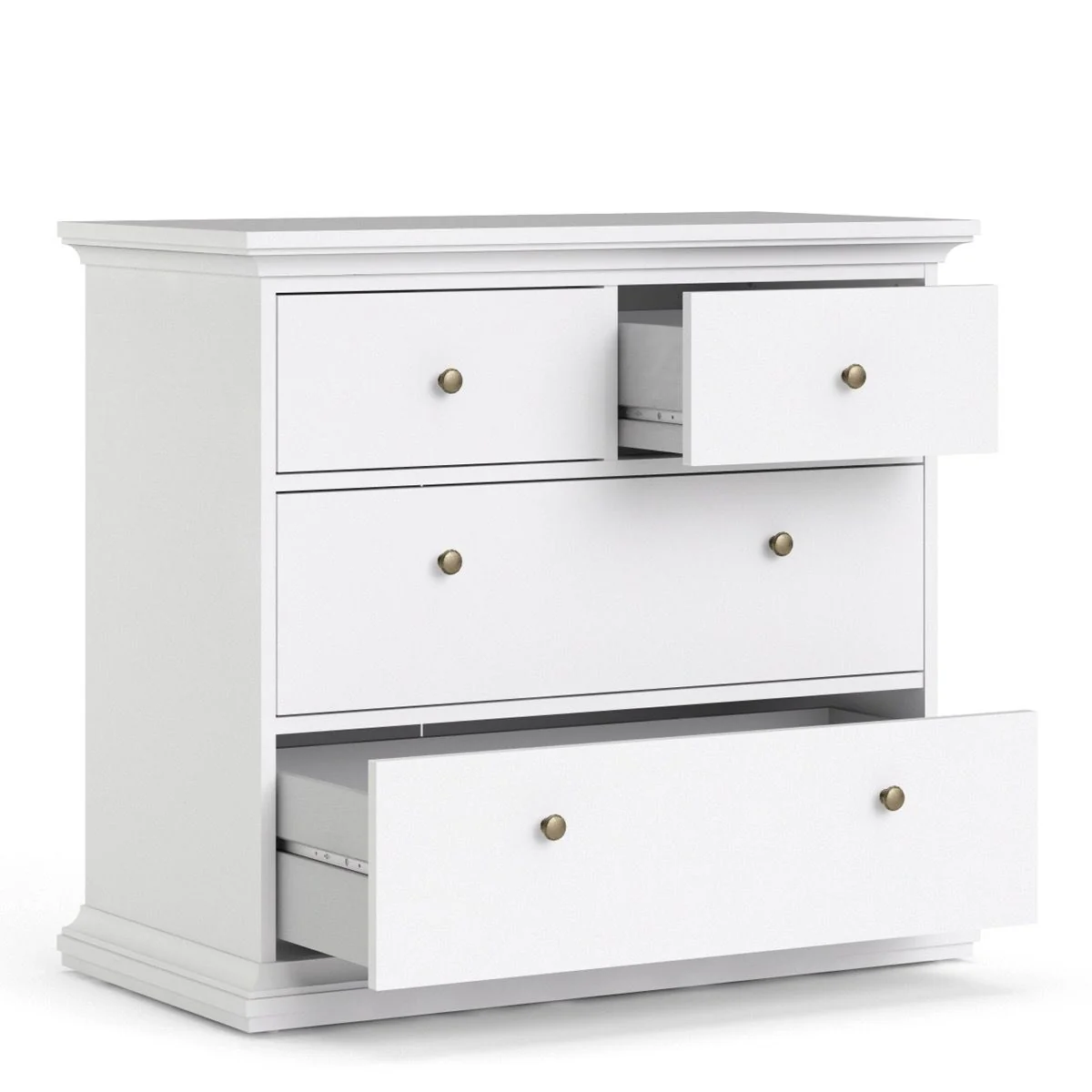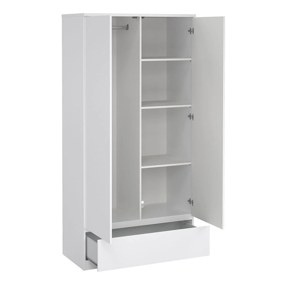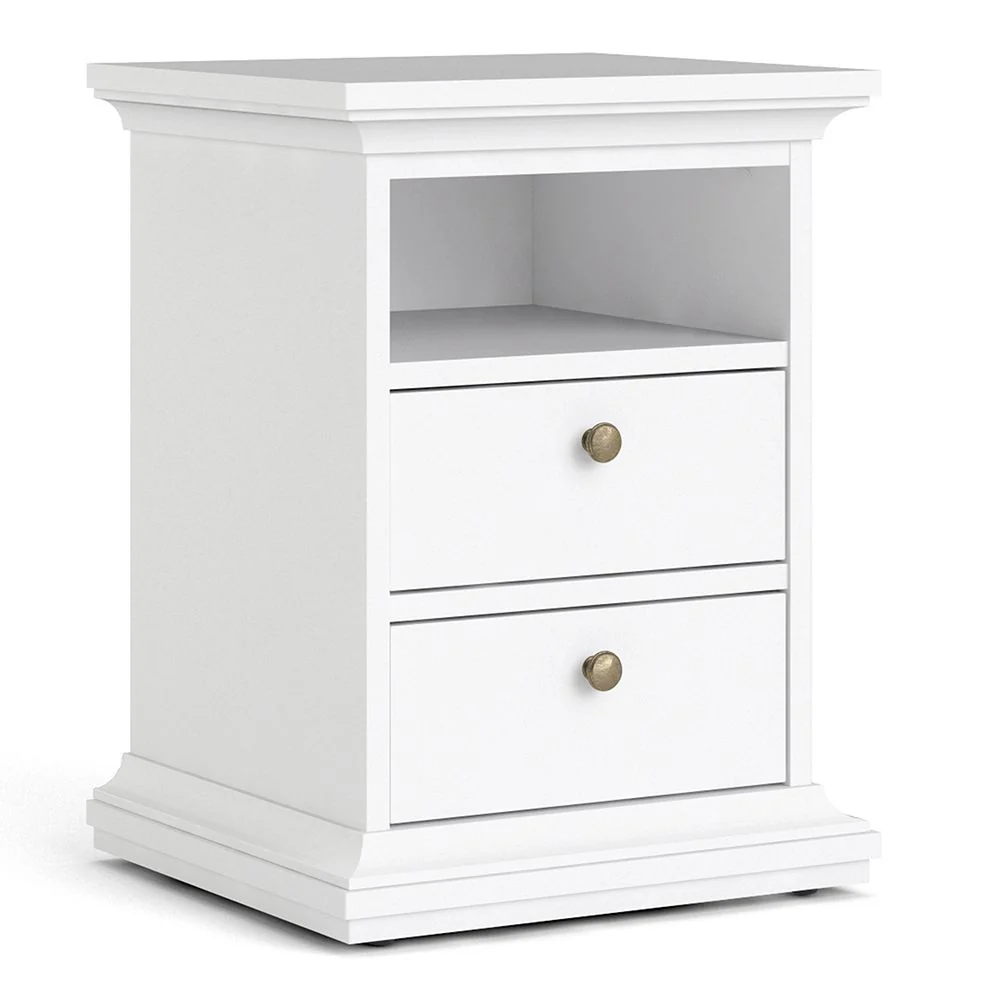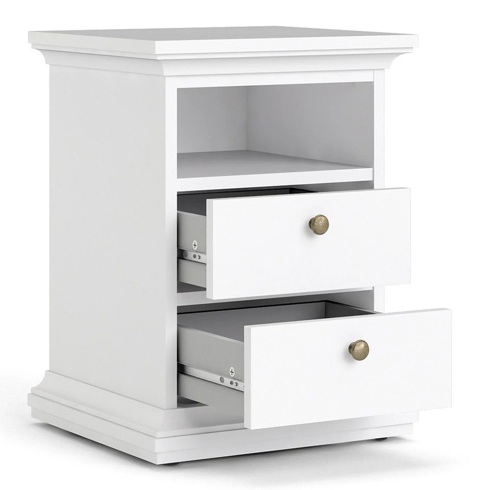 Barcelona - Bedside Table 2 drawers + 3+2 Drawer Chest + 2 Door Wardrobe - White