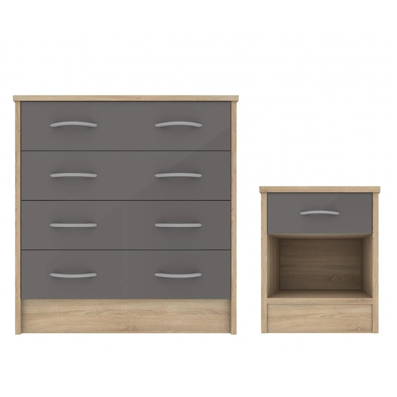 Naia Package - White High Gloss + 3 Drawer Bedside + Chest of 5 Drawers + 2 door 1 drawer Wardrobe