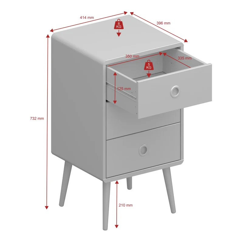 Stowe Silver Grey 3 Drawer Bedside Cabinet