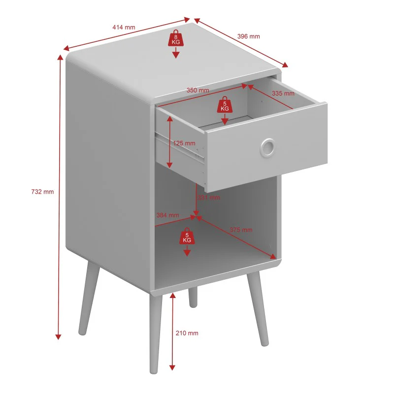Naiah Bedside - 1 Drawer 1 Shelf in White High Gloss