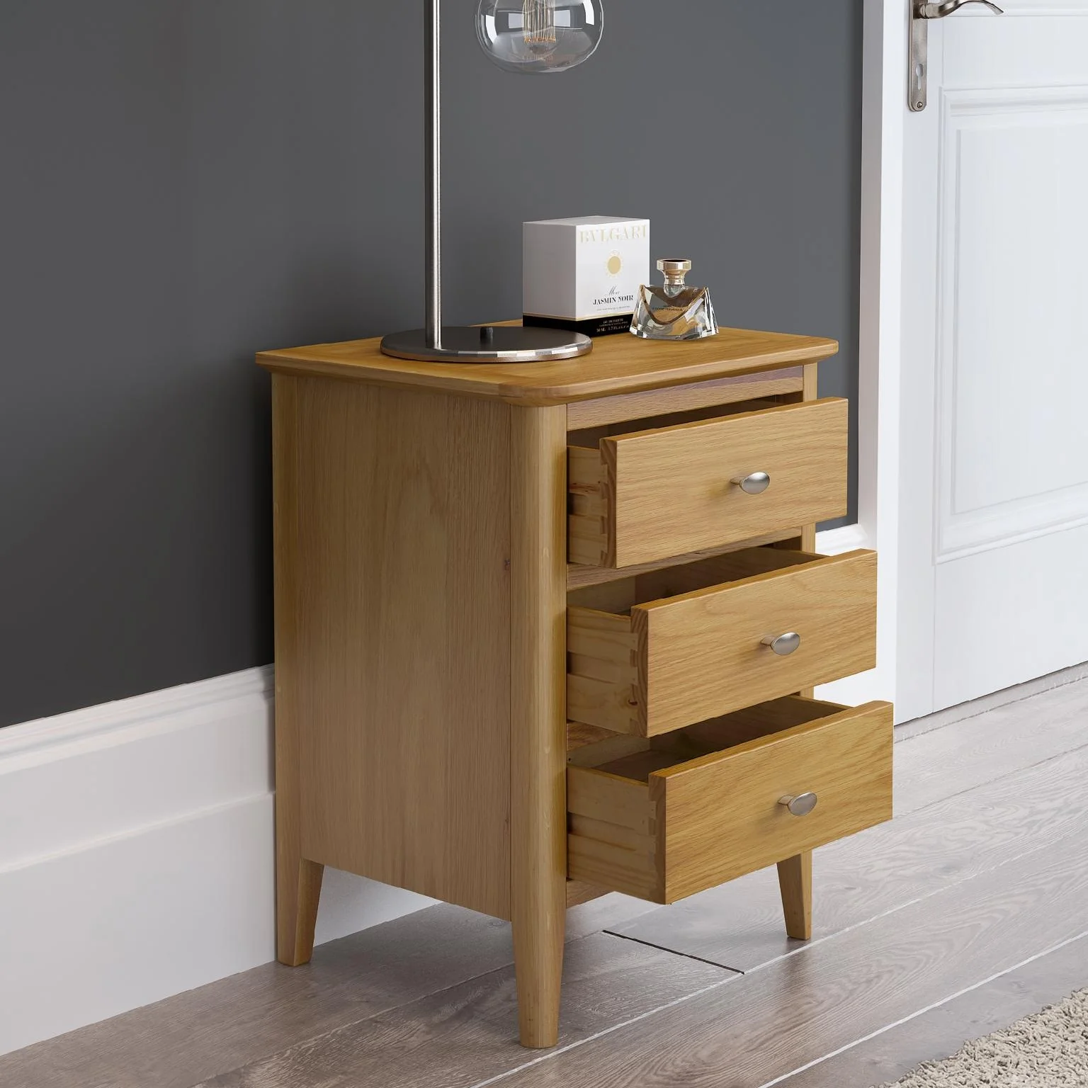 Sailsbury Solid Oak Bedside Cabinet - 3 Drawers