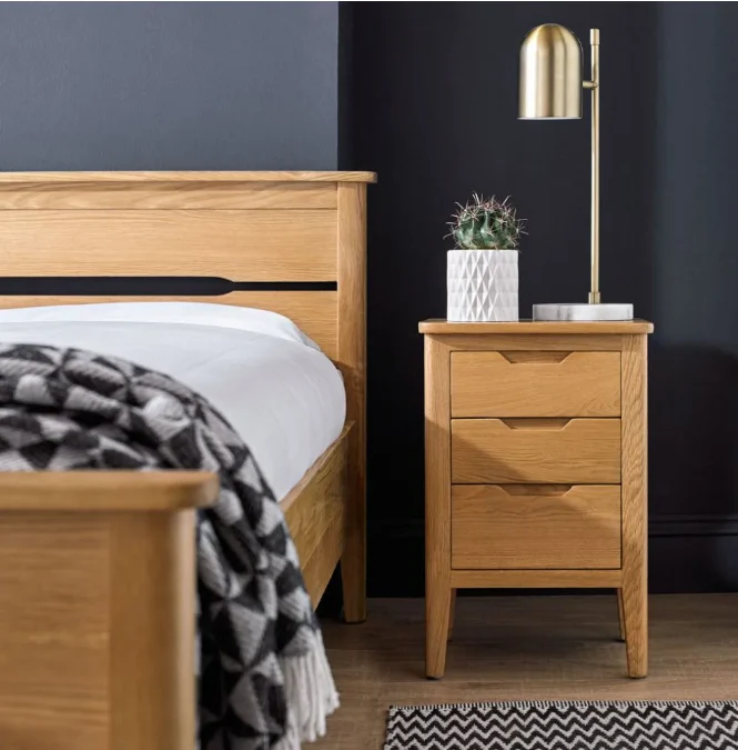 Harkuta Solid Oak 3 Drawer Bedside Cabinet