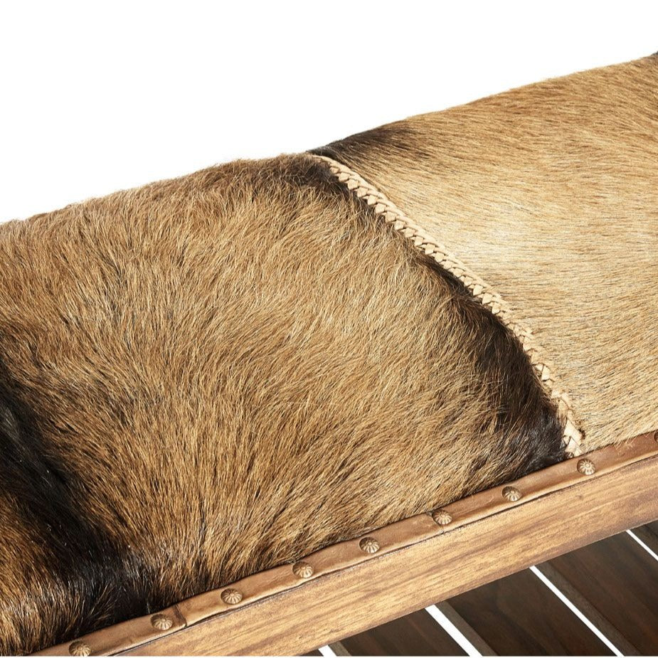 Goathide & Teak Wood Leather Bench Seat