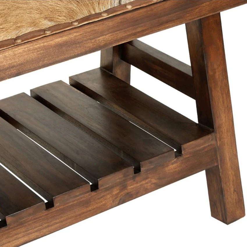 Rodeo Cowhide Storage Bench Seat