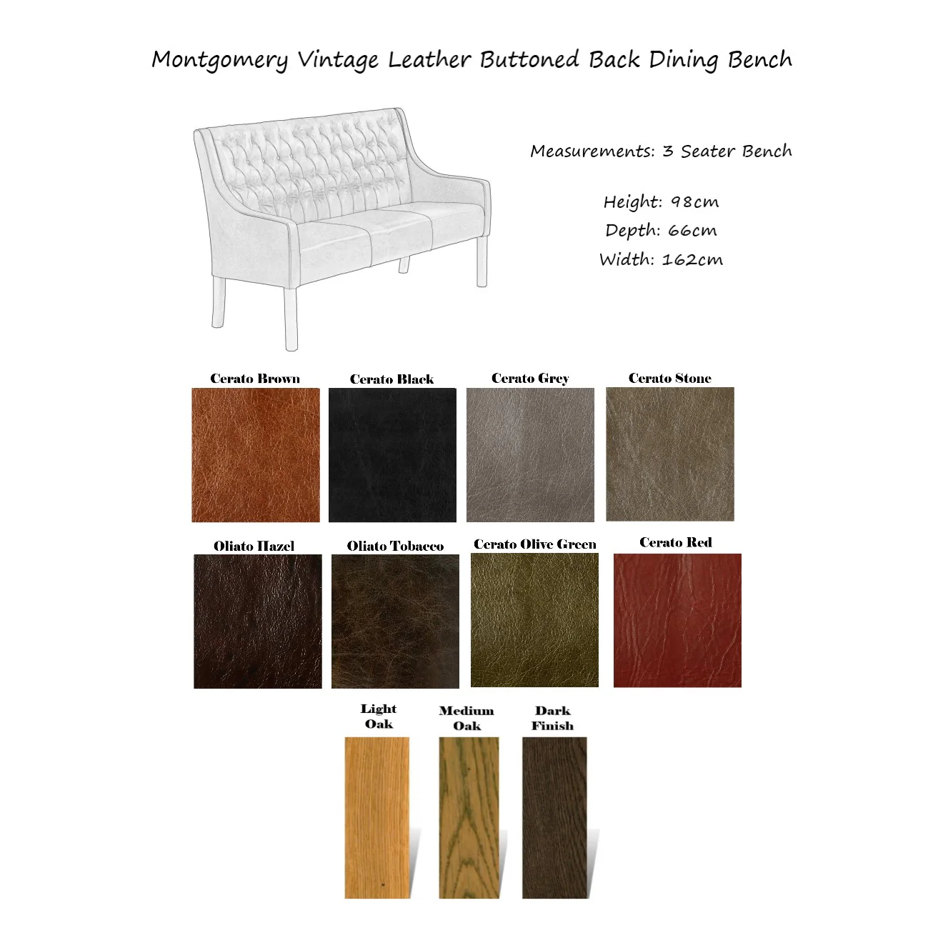 Montgomery Vintage Leather Buttoned Back Dining Bench - Choice Of Sizes & Leather