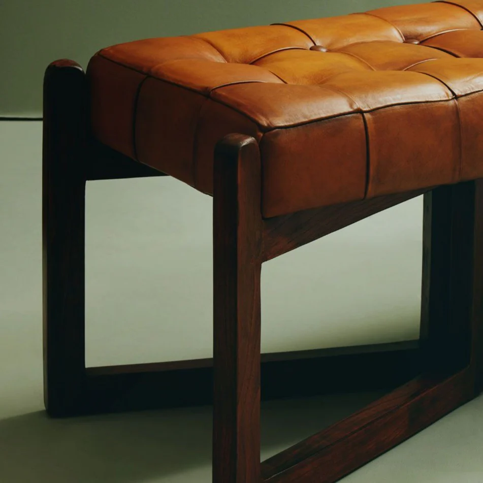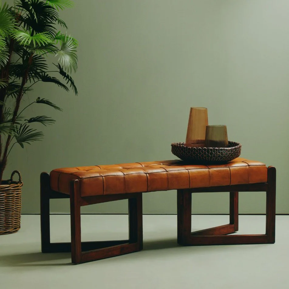 Ivy Genuine Leather Button Tufted Triangular Base Bench Seat - 127cm