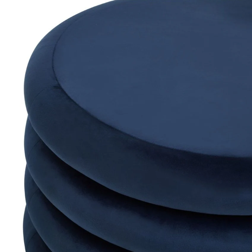 Ford Round Midnight Blue Velvet Ottoman Stool