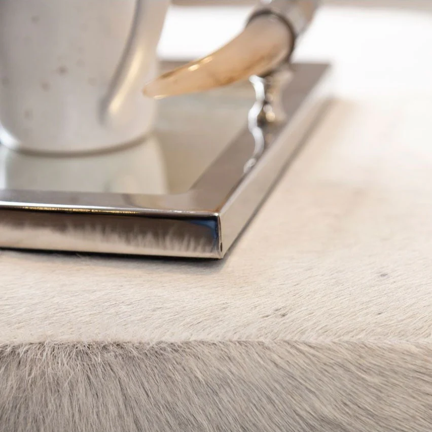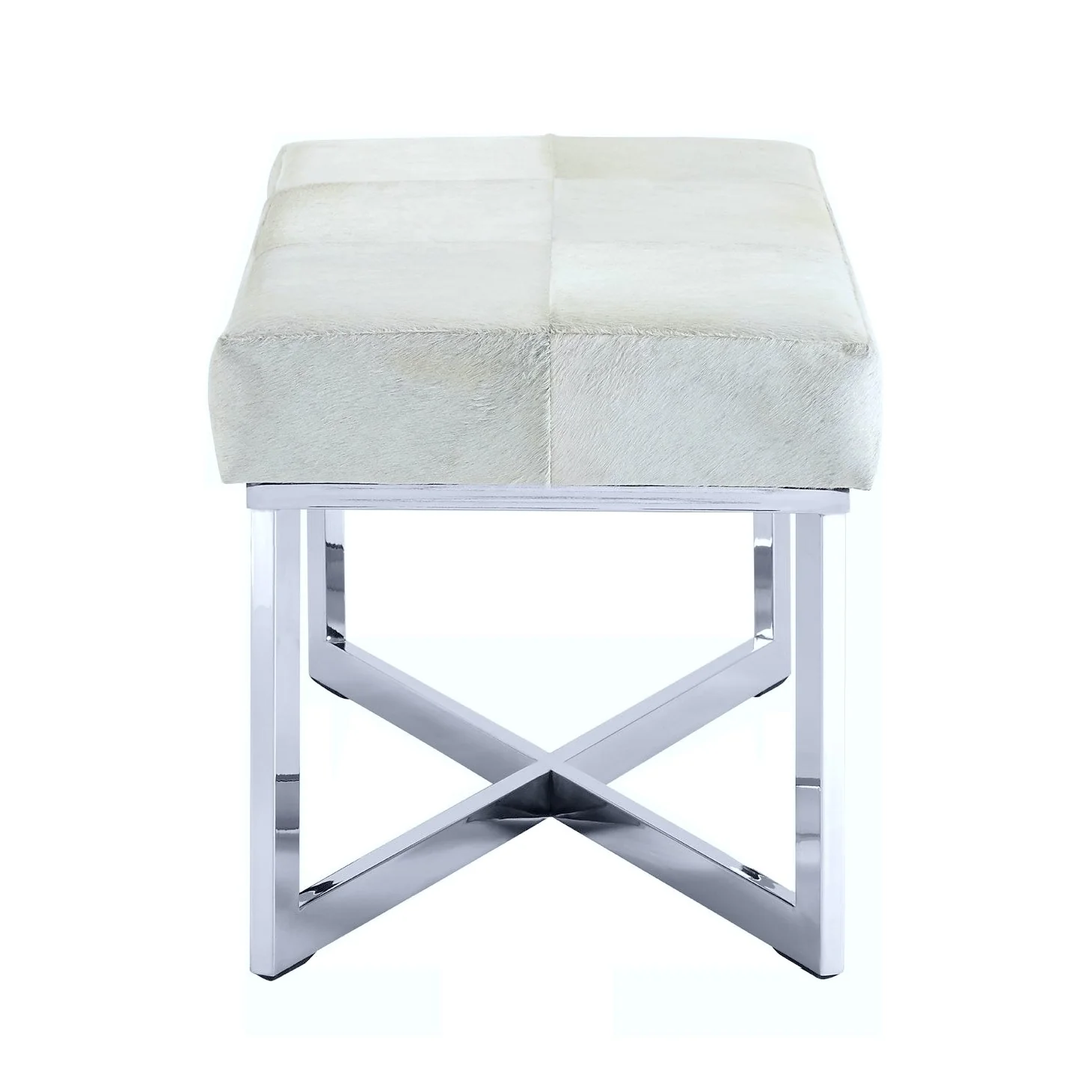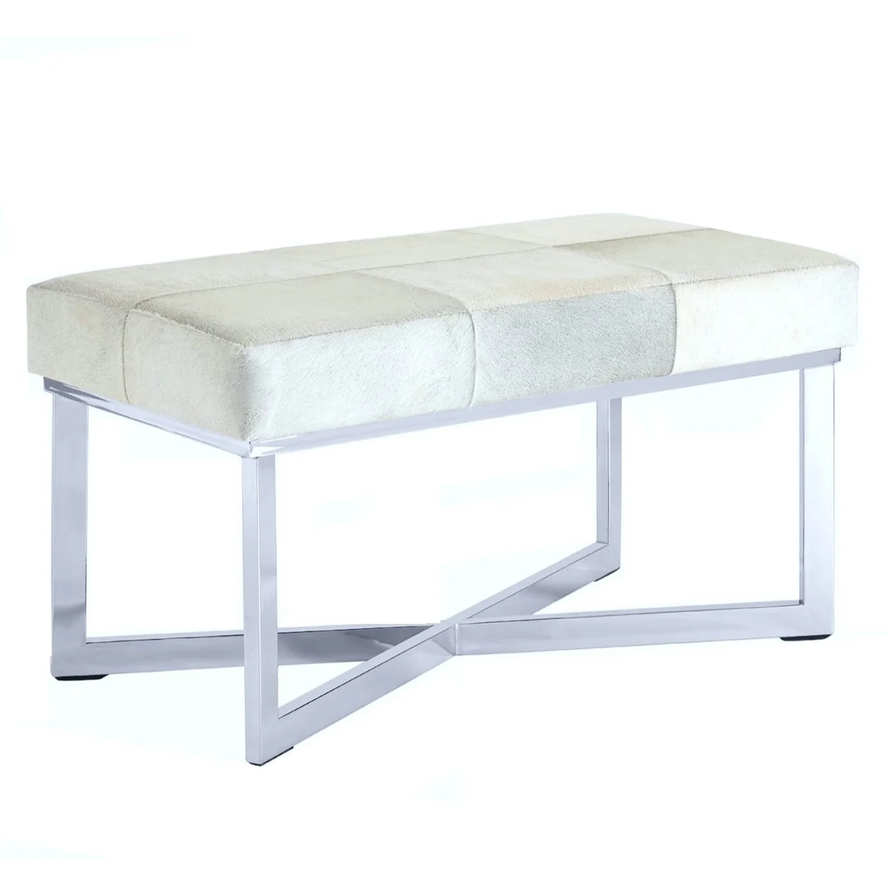 Townhouse Genuine White Leather & Stainless Steel Base Bench