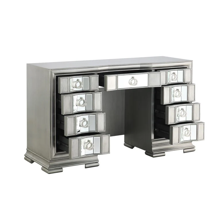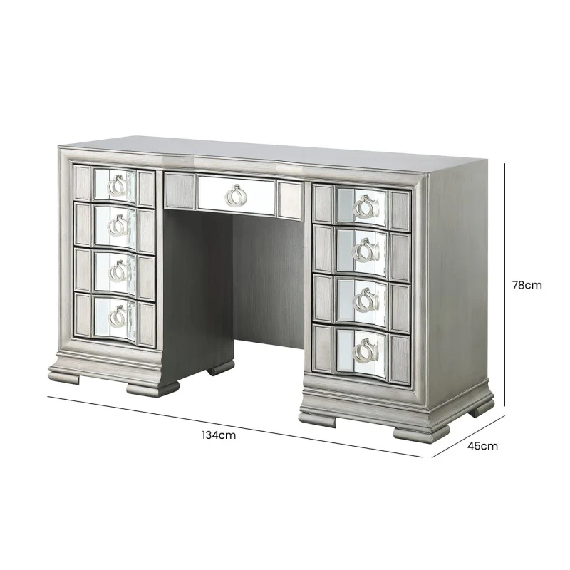 Lucca Grey Mirrored 9 Drawer Dressing Table