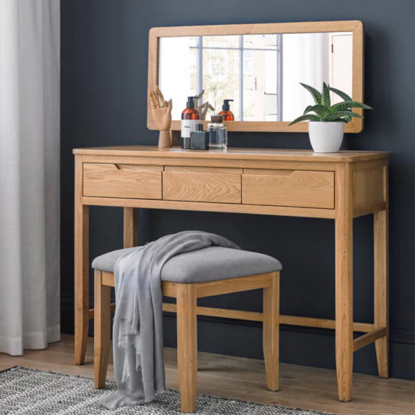 Harkuta Solid Oak Dressing Table - Dressing Table, Stool & Mirror