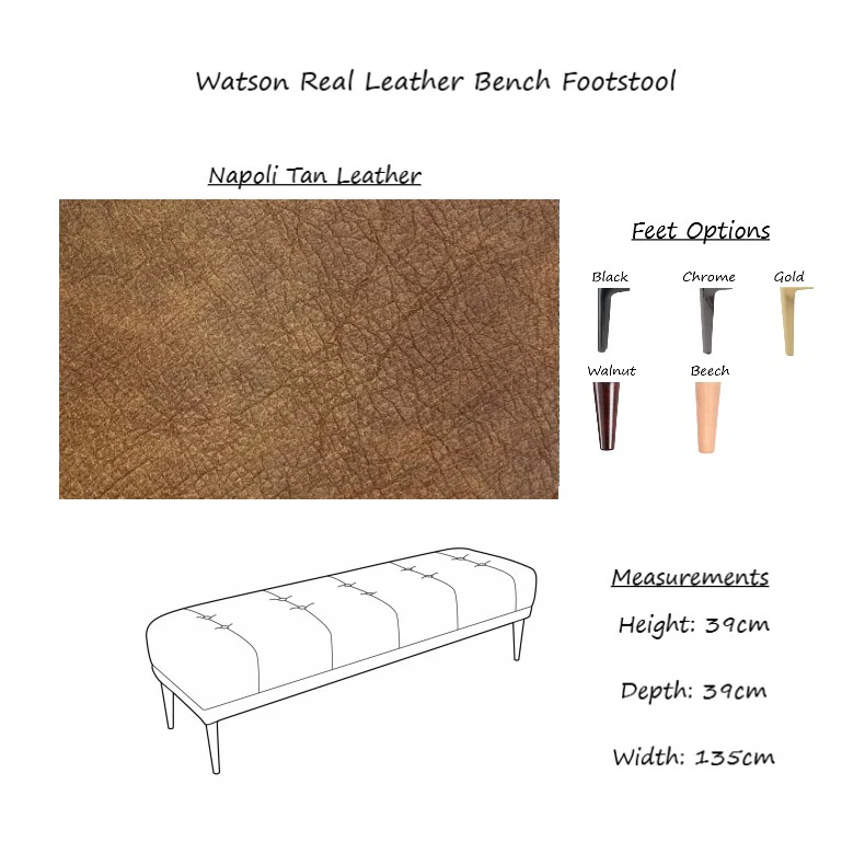 Watson Real Leather Bench Footstool - Choice Of Leathers & Legs