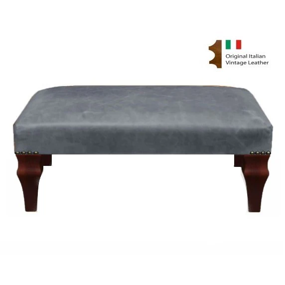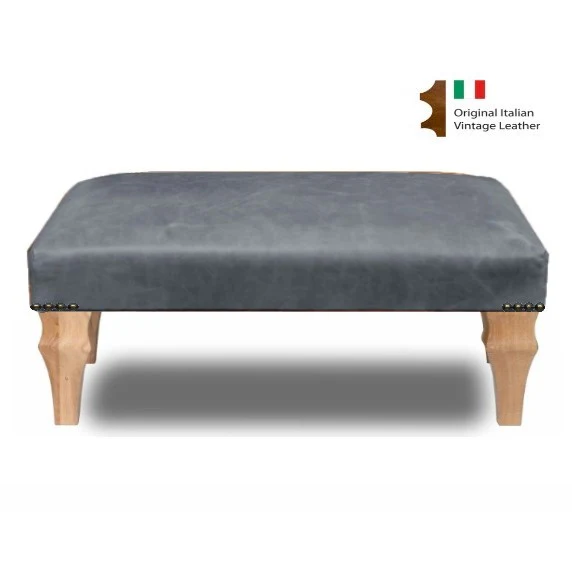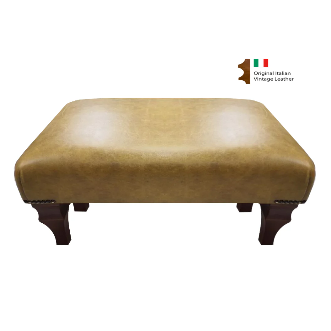 Vintage Leather Small Banquet Footstool - Choice Of Leather & Leg Finishes
