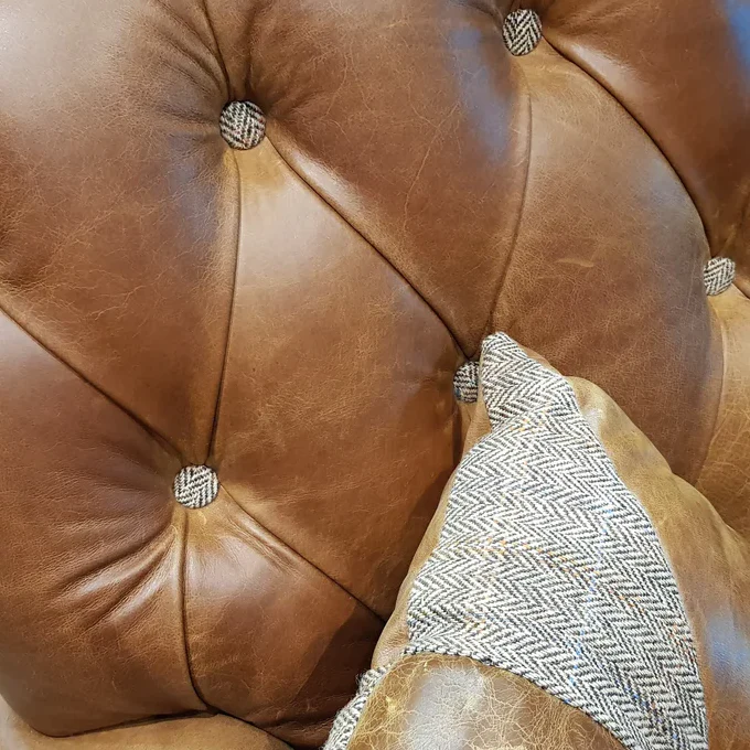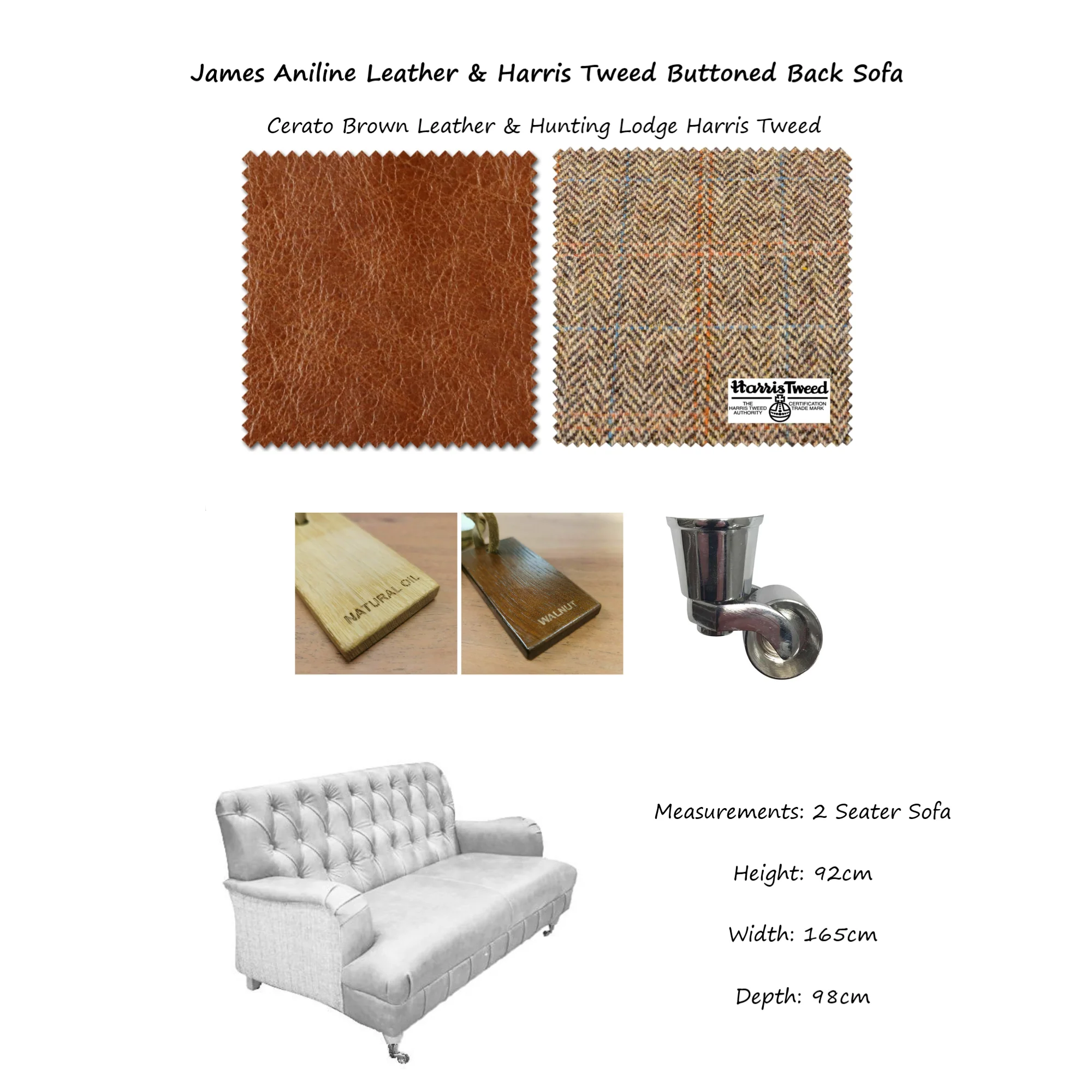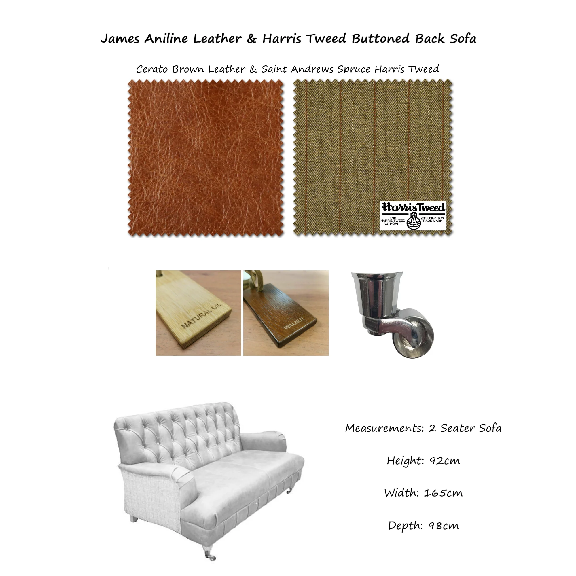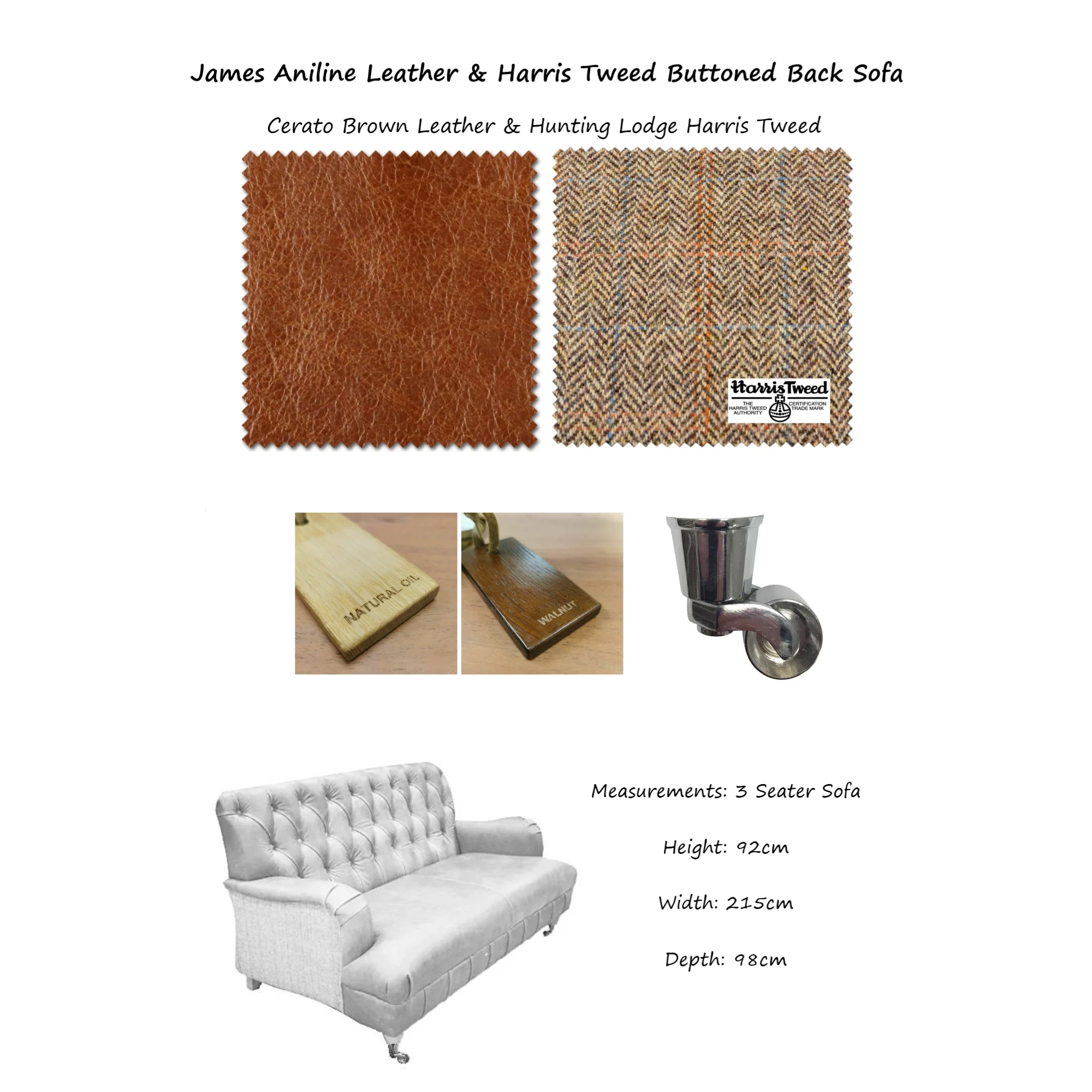James Aniline Leather & Harris Tweed Buttoned Back Sofa & Armchair Collection