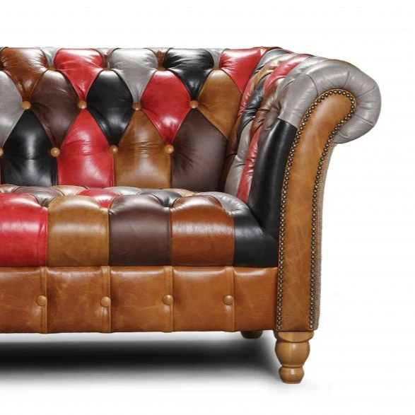 Alderley Vintage Leather & Harris Tweed Patchwork Chesterfield Sofa