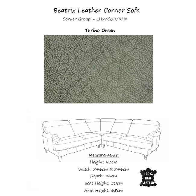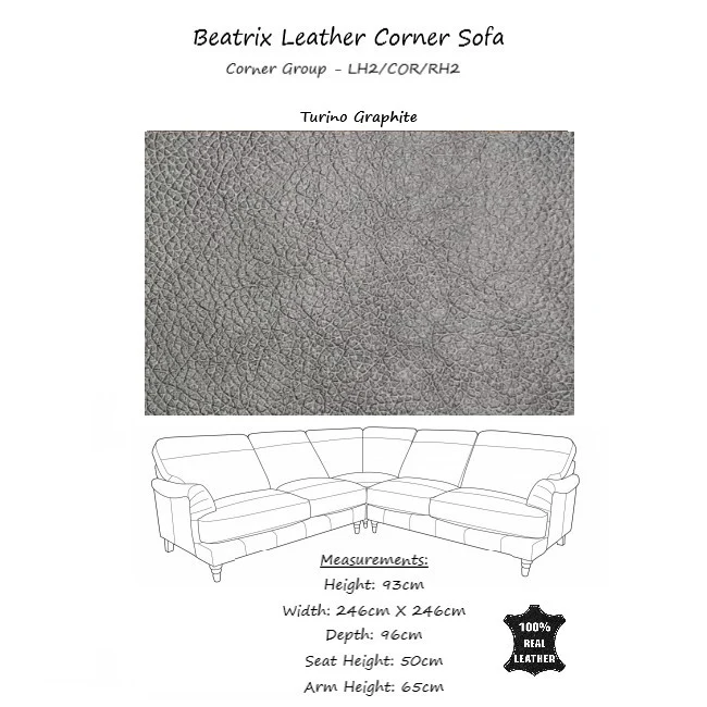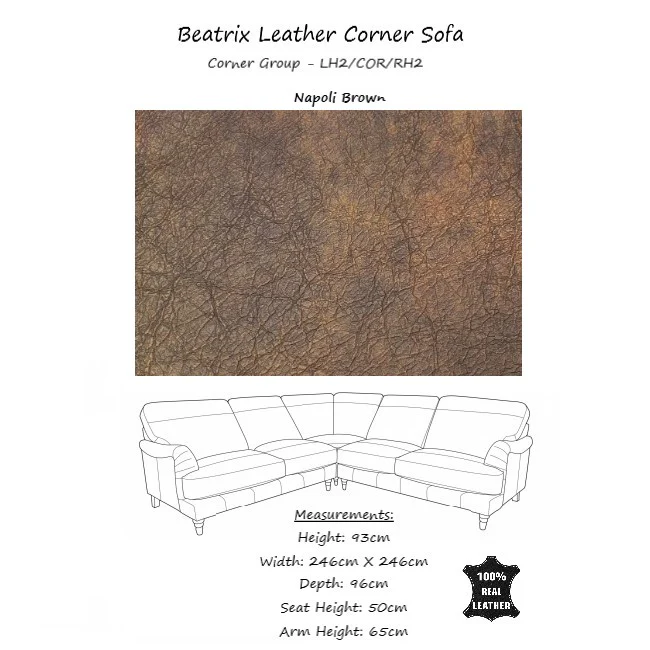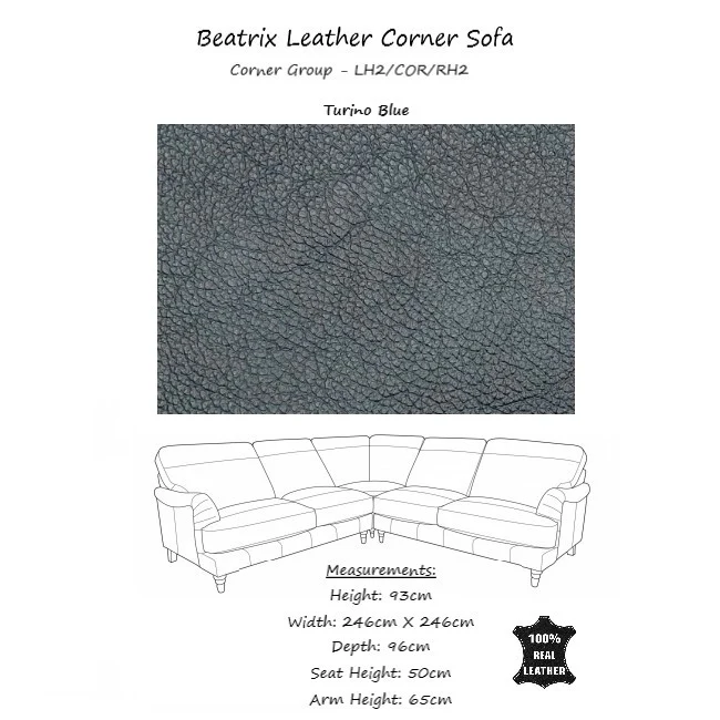 Beatrix Leather Corner Sofa - Choice Of Feet & Leathers