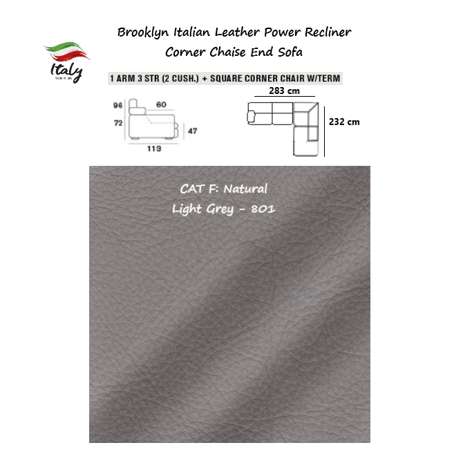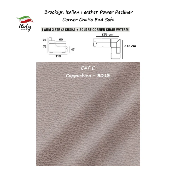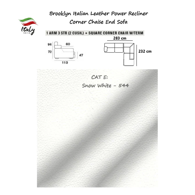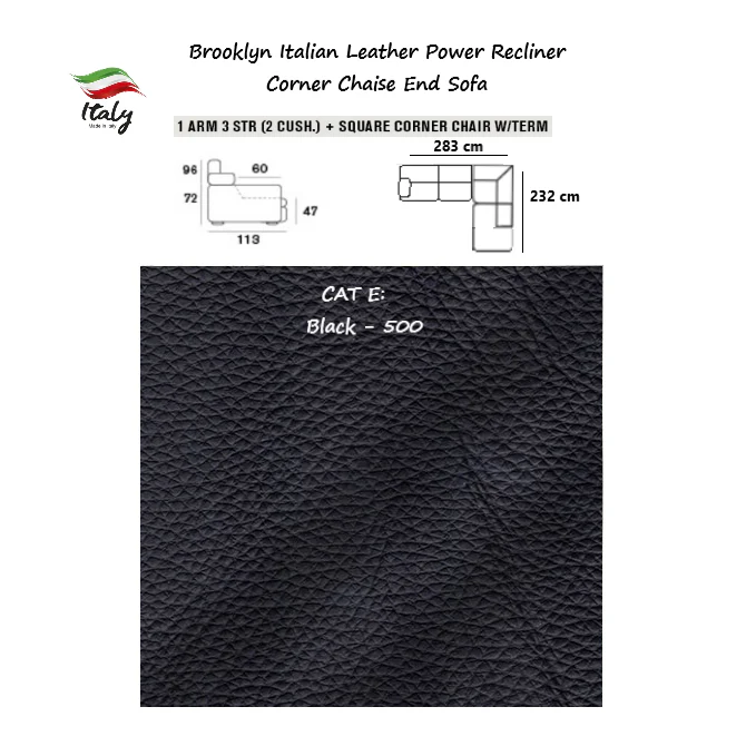 Brooklyn Italian Leather Power Recliner Corner Chaise End Sofa - Various Options