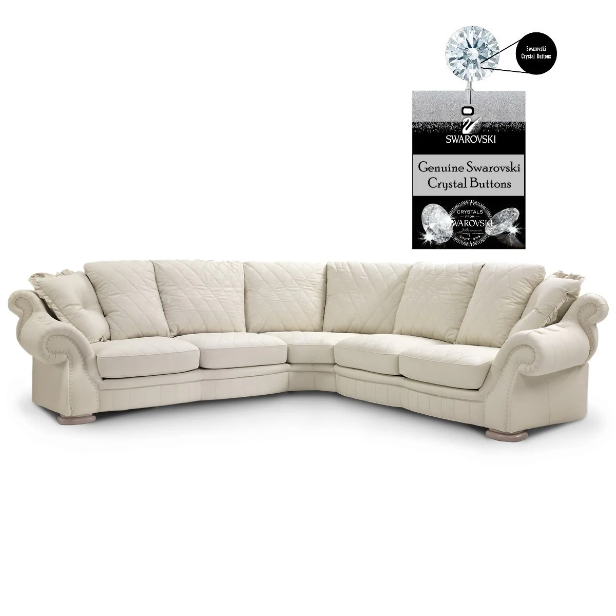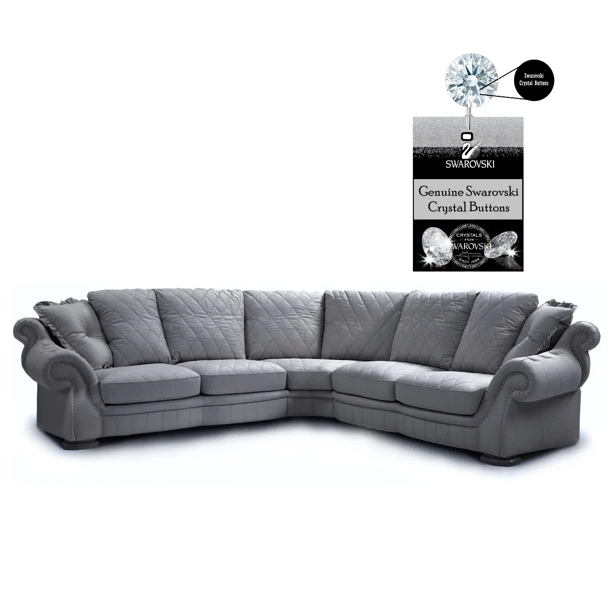 Pendragon Italian Leather Corner Sofa - Choice Of Leathers & Optional Swarovski Crystal Buttons.