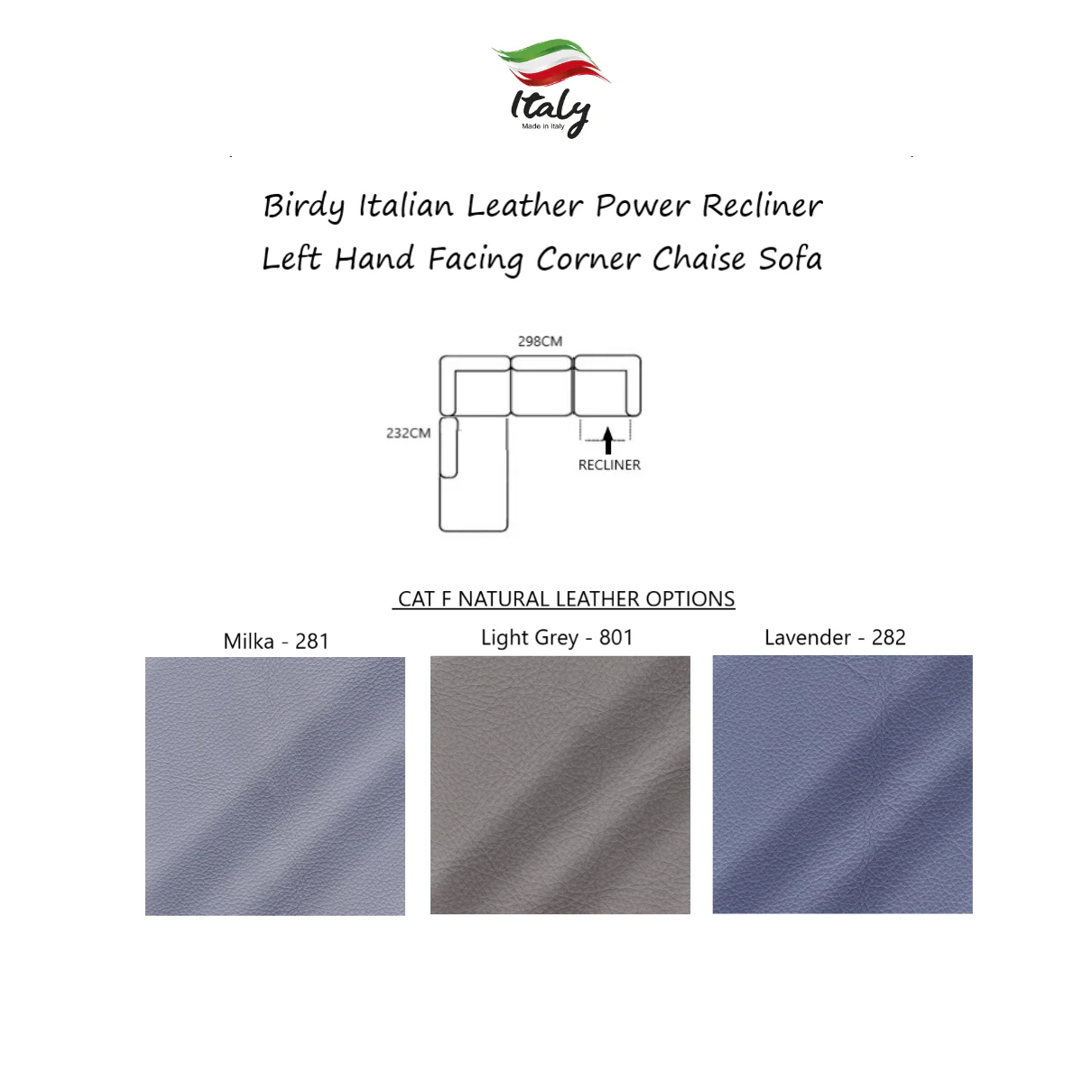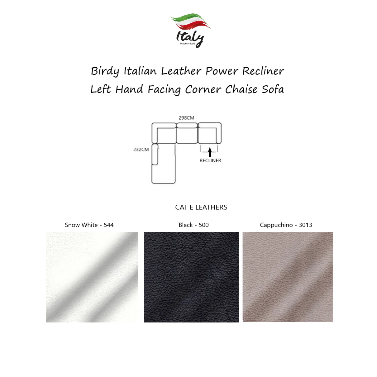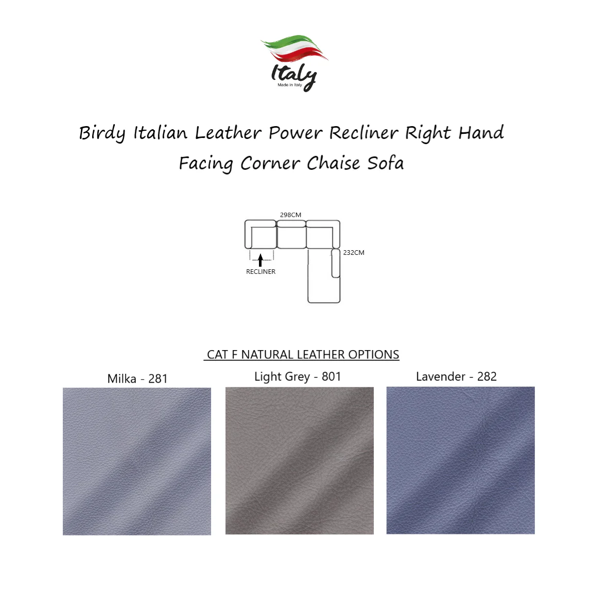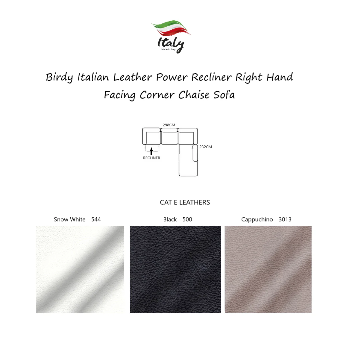 Birdy Italian Leather Power Recliner Corner Sofa - Various Options