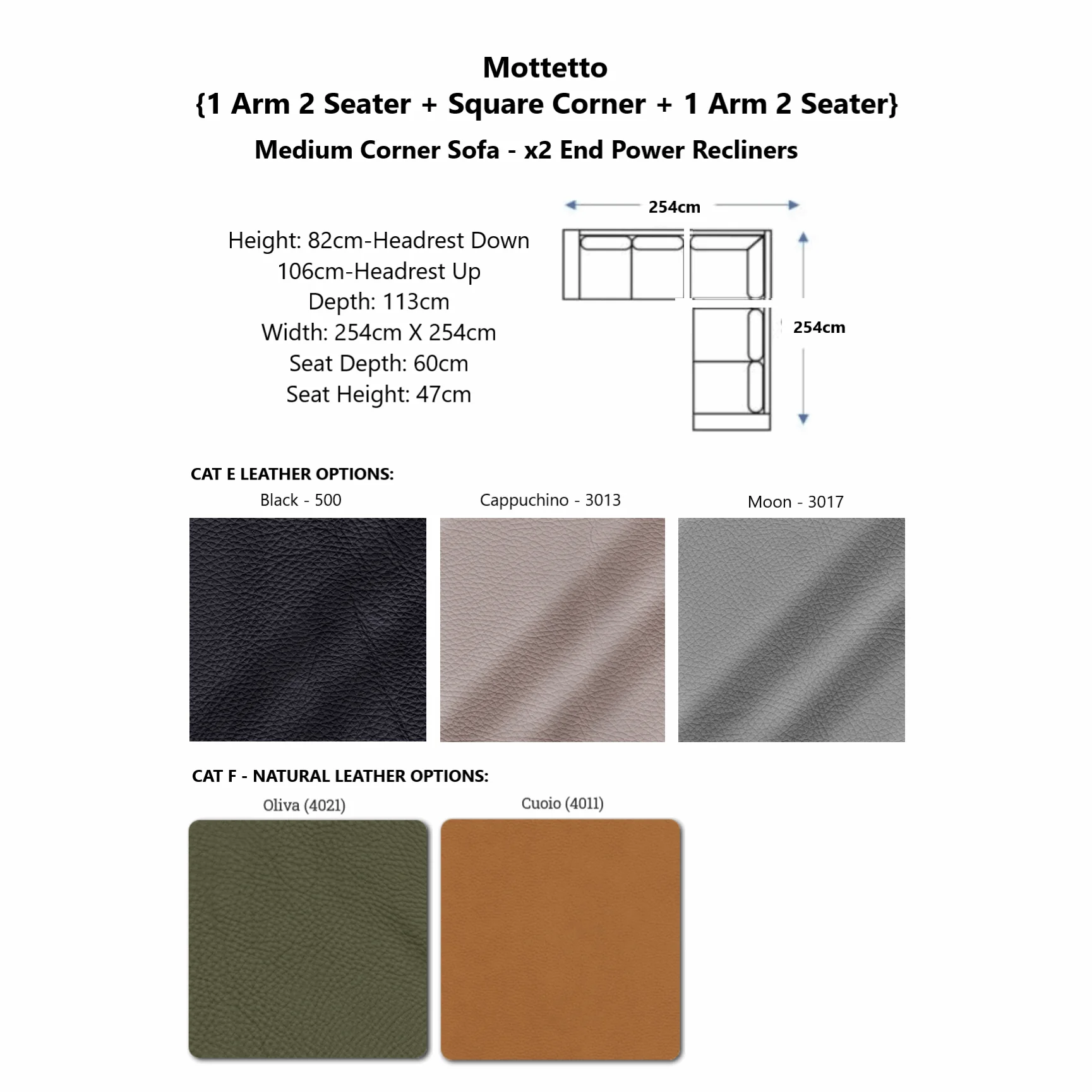 Mottetto Italian Leather Power Recliner Sofa - Various Options