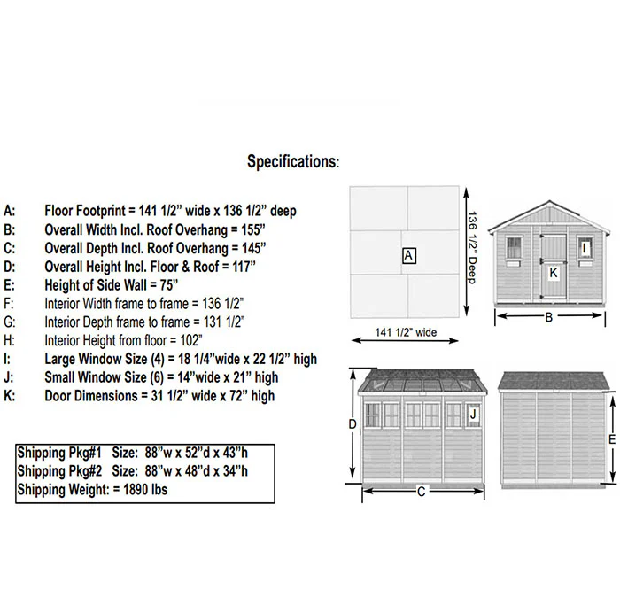 Outdoor Living Today Sunshed Garden Shed | 12×12