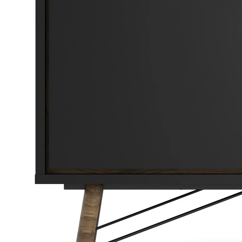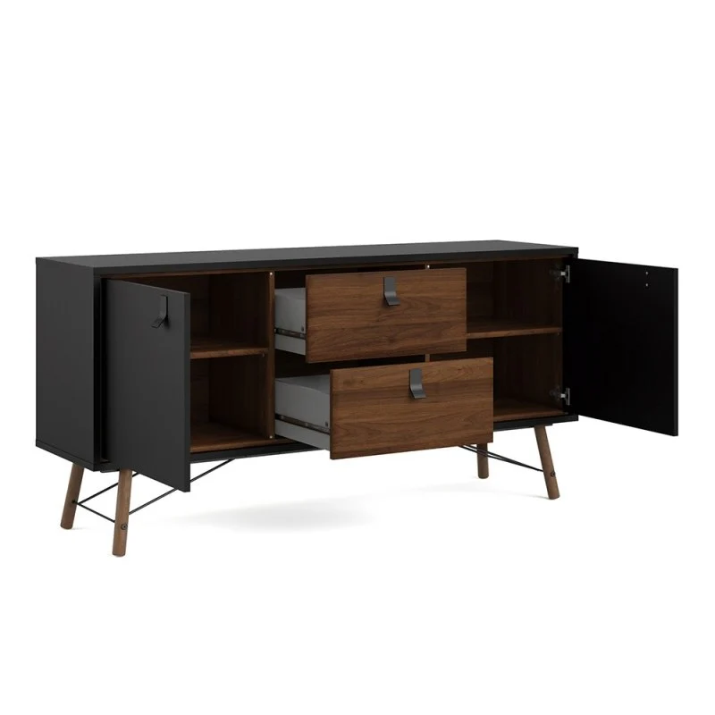 Rena 2 Door 2 Drawer Wide Sideboard - Matt Black & Walnut