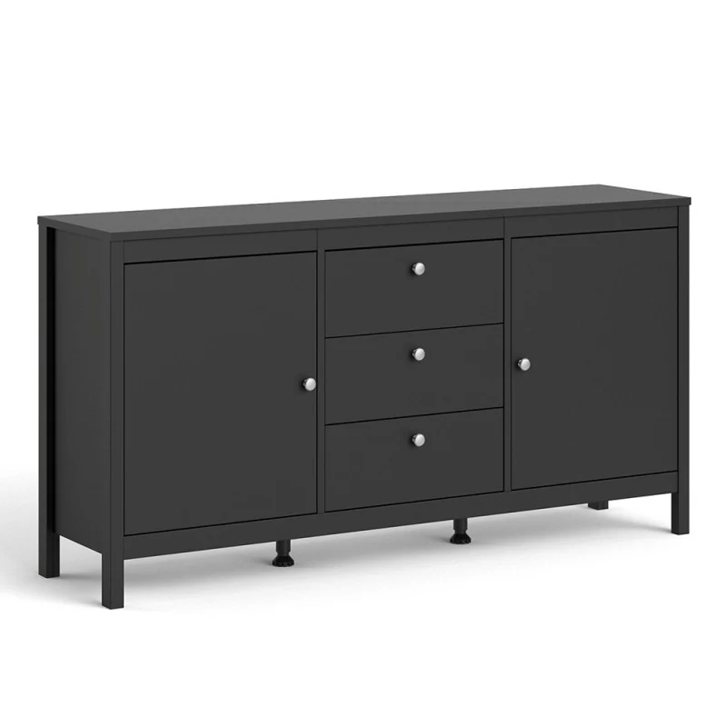 Madrid 2 Door 3 Drawer Large Sideboard - Matt Black