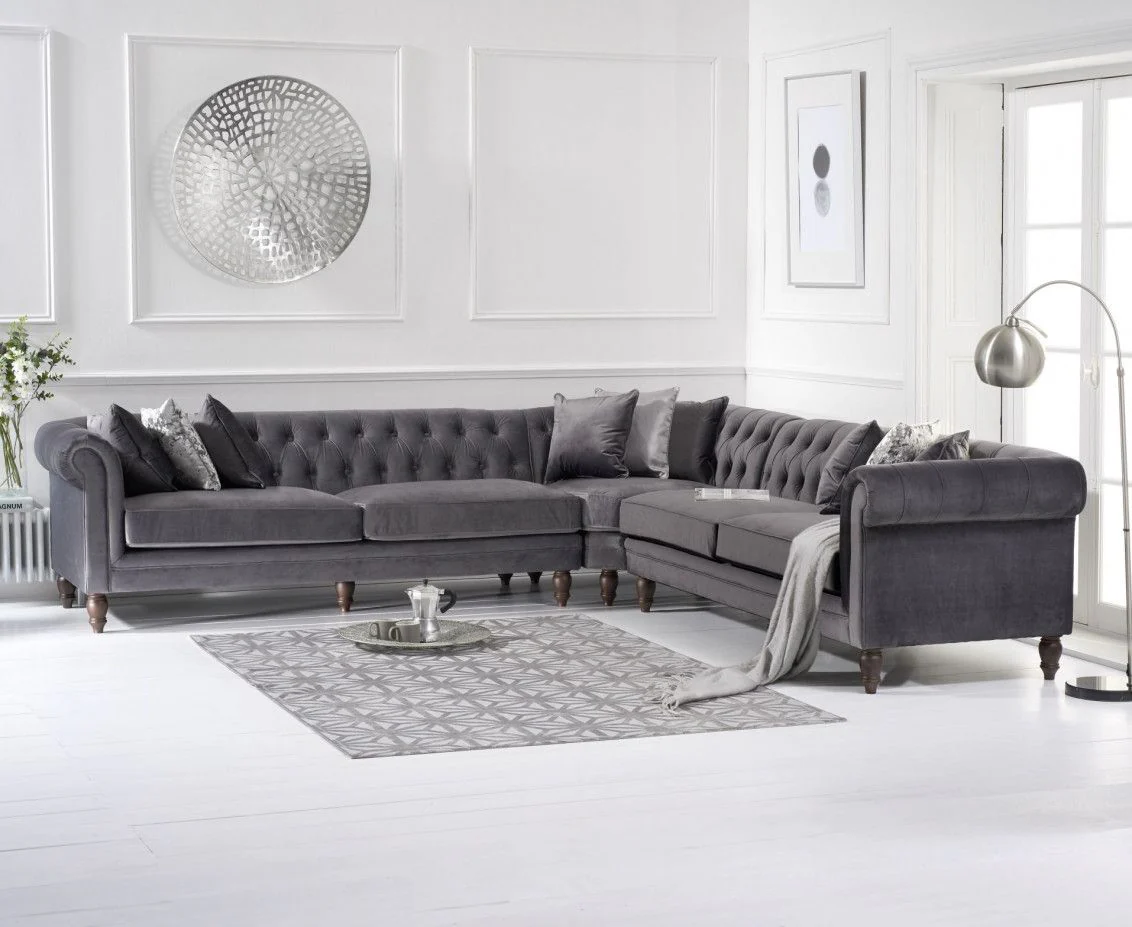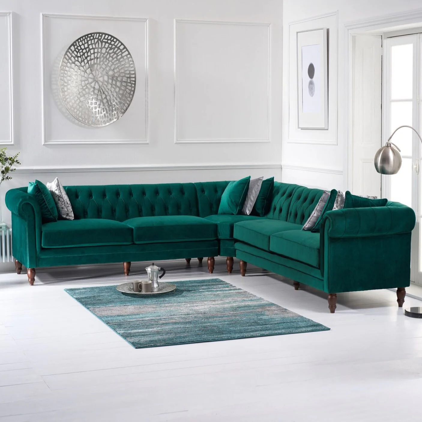Classic Chesterfield Plush Velvet Corner Sofa - Choice Of Colours