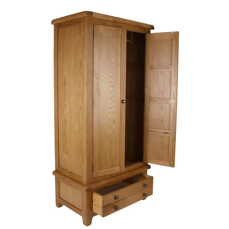 Sailsbury Solid Oak Gents Double Wardrobe 2 Doors & 1 Bottom Storage Drawer