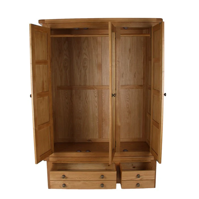 Sailsbury Solid Oak Triple Wardrobe 3 Doors & 2 Bottom Storage Drawers
