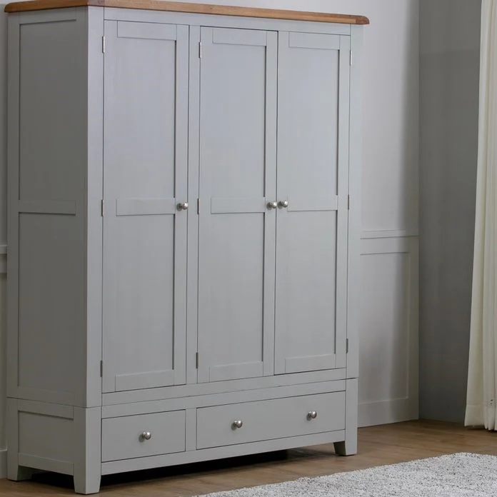St.Ives French Grey & Oak 3 Door 2 Drawer Triple Wardrobe