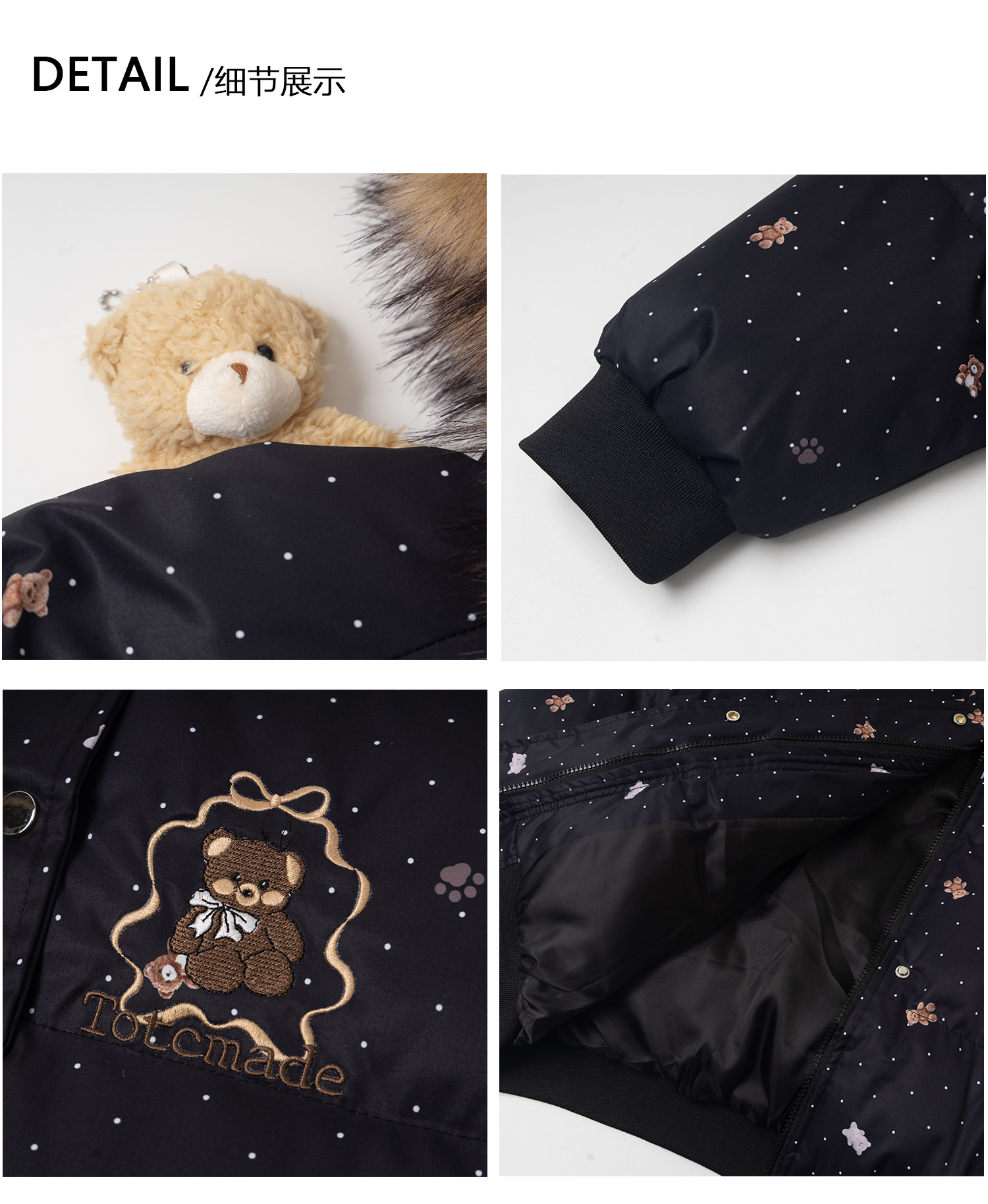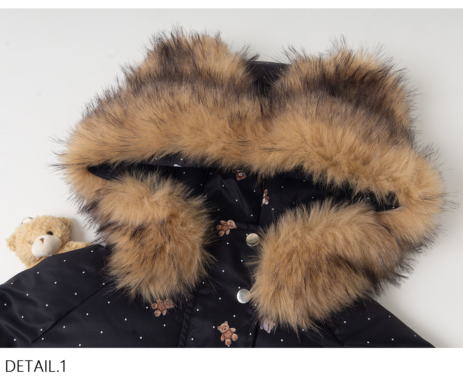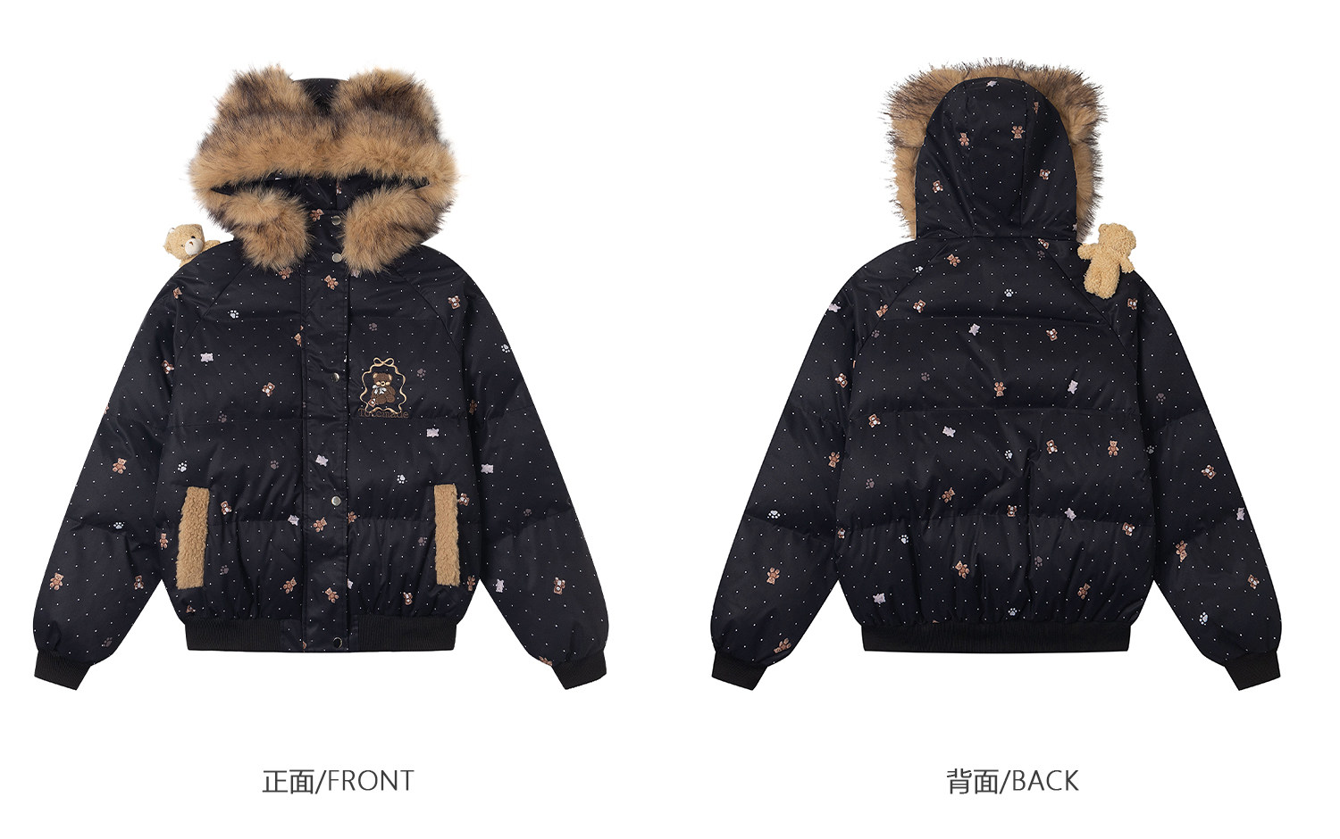 Cute polka dot keychain bear collar hooded cotton coat women's winter couple warm puffer jacket